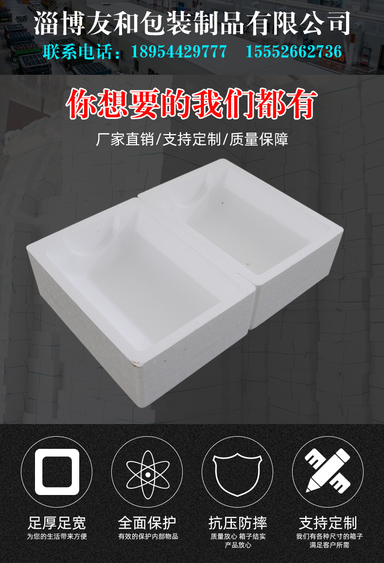 ????淄博友和包裝制品有限公司是專業的山東泡沫包裝箱加工廠家,本廠主要產品有:泡沫包裝箱,泡沫保鮮箱,水果蔬菜泡沫包裝箱,水果蔬菜泡沫保鮮箱,瓷磚泡沫包裝箱等,產品暢銷全國,深受用戶好評。泡沫包裝定做可以聯系我們網站 http://www.nxzxx.com/ 上電話,我們會第一時間跟您聯系。